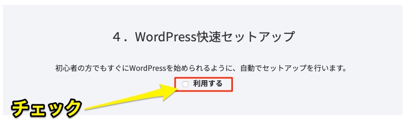 「WordPress快速セットアップ」 の項目で 「利用する」 にチェックを入れます。