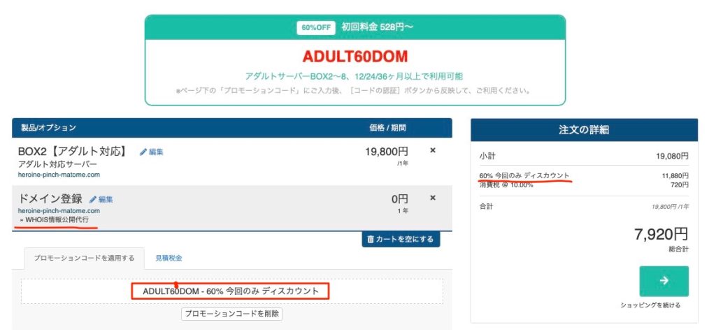 手順⑥:Whois情報公開代行の確認とプロモーションの確認