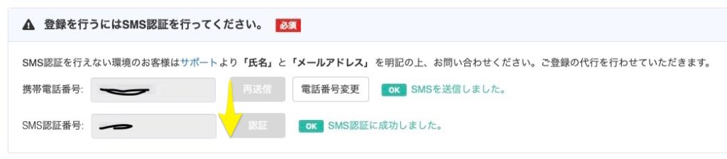 続いてすぐ下にある「SMS認証」を行いましょう。